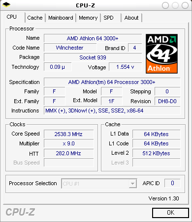 | Процессор (ядро) | AMD Athlon 64 (Winchester) |