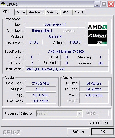 Результат разгона AMD Athlon XP (Thoroughbred)