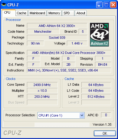 | Процессор (ядро) | AMD Athlon 64 X2 (Manchester) |