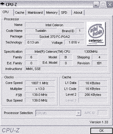 Результат разгона Intel Celeron (Tualatin)