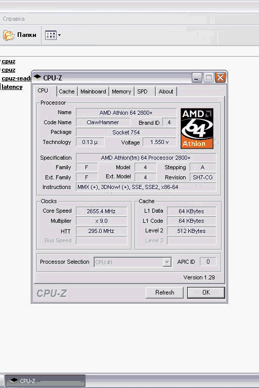 Результат разгона AMD Athlon 64 (ClawHammer)