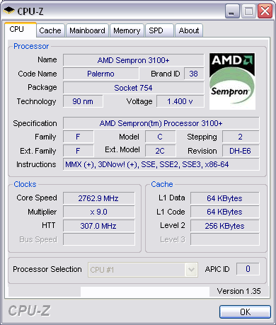 | Процессор (ядро) | AMD Sempron (Palermo) |