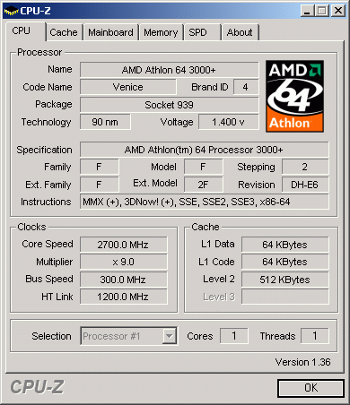 Результат разгона AMD Athlon 64 (Venice)