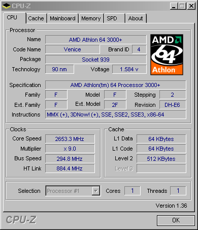 | Процессор (ядро) | AMD Athlon 64 (Venice) |