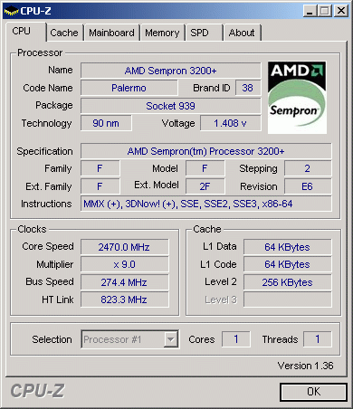 | Процессор (ядро) | AMD Sempron (Palermo) |