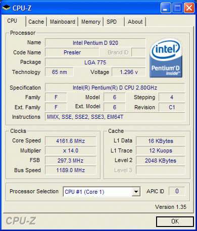 | Разгон, максимально стабильная частота (FSB x Ratio) | 4158 (297 x 14.0) |