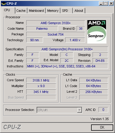 Результат разгона AMD Sempron (Palermo)
