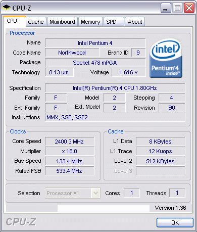 | Процессор (ядро) | Intel Pentium 4 (Northwood) |