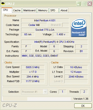 | Процессор (ядро) | Intel Pentium 4 (CedarMill) |
