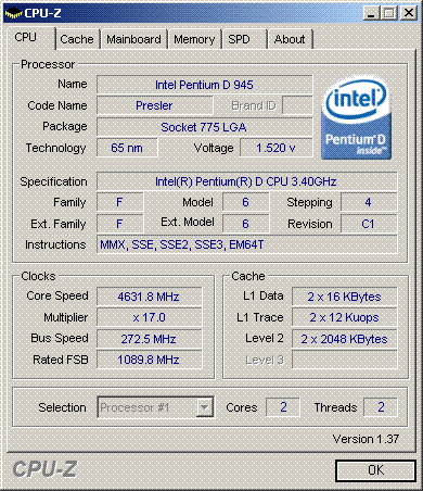 Результат разгона Intel Pentium D (Presler)