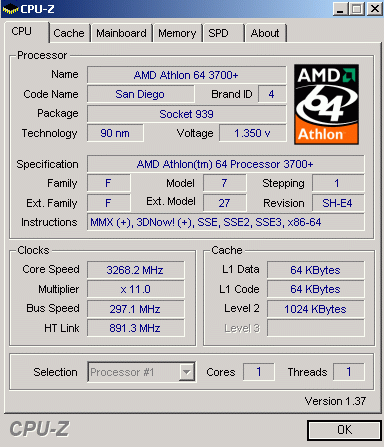 | Процессор (ядро) | AMD Athlon 64 (San Diego) |