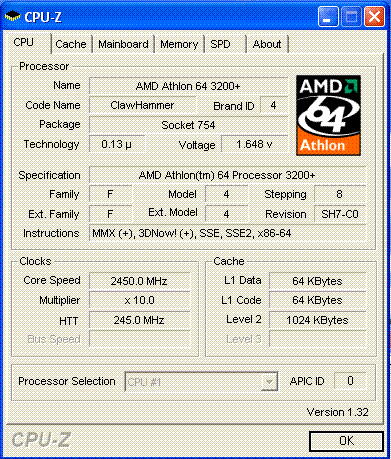 Результат разгона AMD Athlon 64 (ClawHammer)