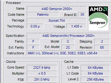 | Процессор (ядро) | AMD Sempron (Palermo) |