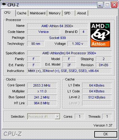 | Процессор (ядро) | AMD Athlon 64 (Venice) |