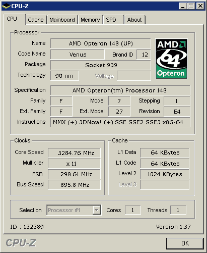 Результат разгона AMD Opteron