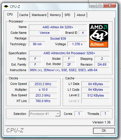 | Процессор (ядро) | AMD Athlon 64 (Venice) |