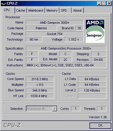 Результат разгона AMD Sempron (Palermo)