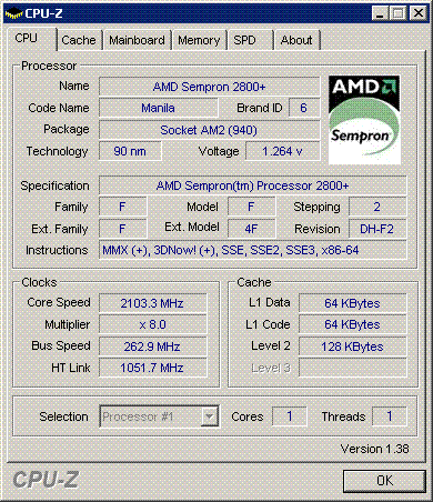 Результат разгона AMD Sempron (Manila)