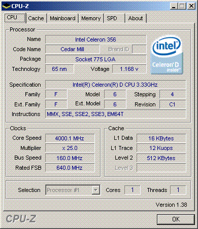| Процессор (ядро) | Intel Celeron D (CedarMill-512) |