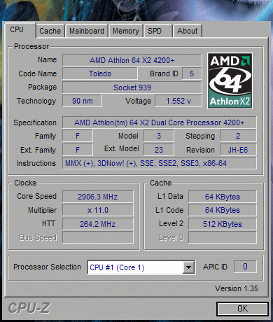 | Процессор (ядро) | AMD Athlon 64 X2 (Toledo) |