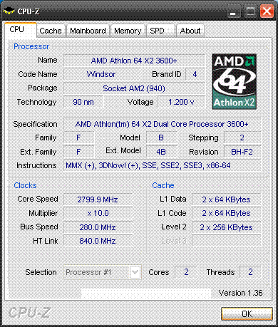Результат разгона AMD Athlon 64 X2 (Windsor)