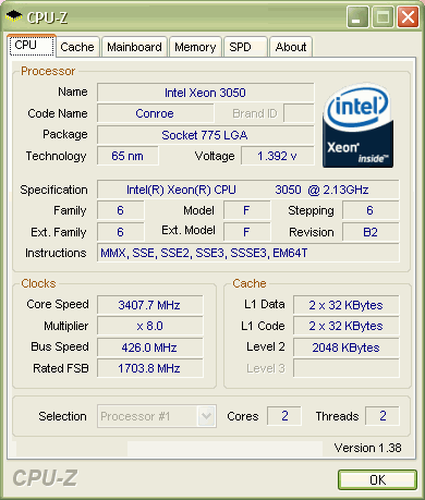 | Разгон, максимально стабильная частота (FSB x Ratio) | 3408 (426 x 8.0) |