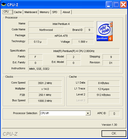 | Процессор (ядро) | Intel Pentium 4 (Northwood) |