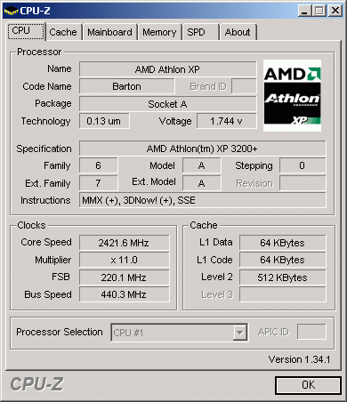 | Процессор (ядро) | AMD Athlon XP (Barton) |