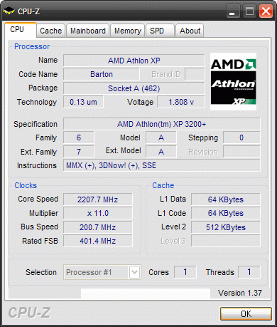 | Процессор (ядро) | AMD Athlon XP (Barton) |