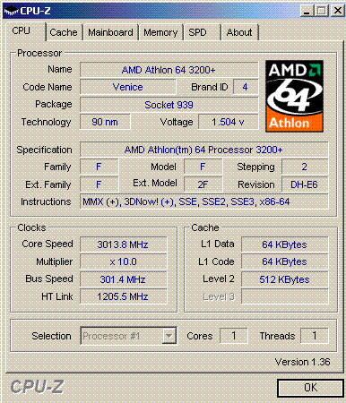 | Процессор (ядро) | AMD Athlon 64 (Venice) |