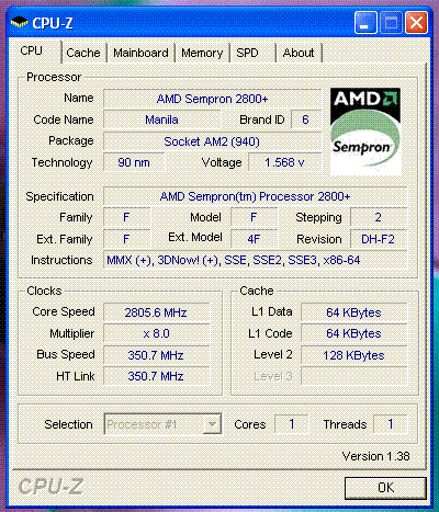 | Процессор (ядро) | AMD Sempron (Manila) |