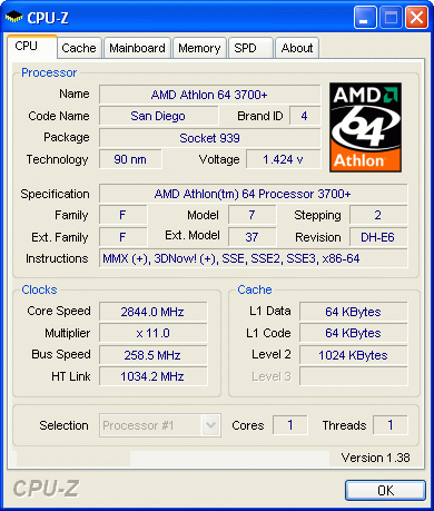 | Процессор (ядро) | AMD Athlon 64 (San Diego) |