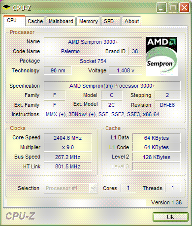 | Процессор (ядро) | AMD Sempron (Palermo) |