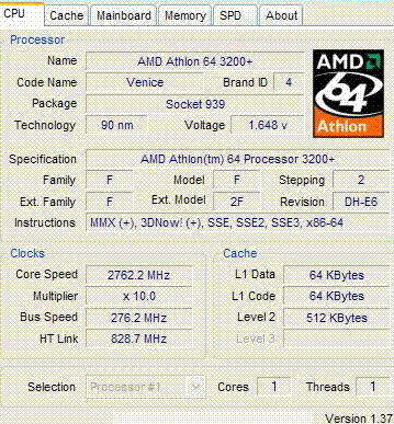 Результат разгона AMD Athlon 64 (Venice)