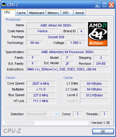 | Процессор (ядро) | AMD Athlon 64 (Venice) |