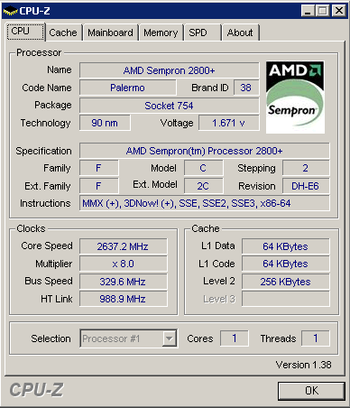 | Процессор (ядро) | AMD Sempron (Palermo) |