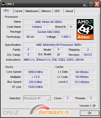 | Процессор (ядро) | AMD Athlon 64 (Orleans) |