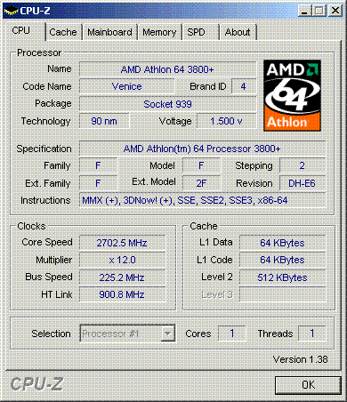 | Процессор (ядро) | AMD Athlon 64 (Venice) |