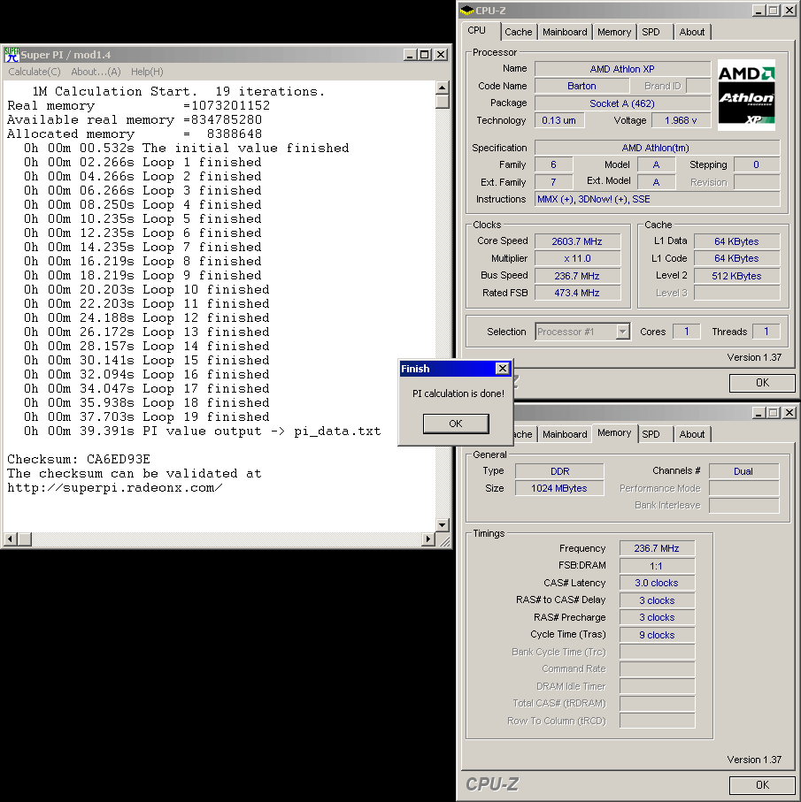 Результат разгона AMD Athlon XP (Barton)