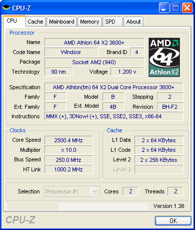 | Процессор (ядро) | AMD Athlon 64 X2 (Windsor) |