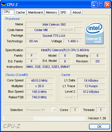 | Процессор (ядро) | Intel Celeron D (CedarMill-512) |