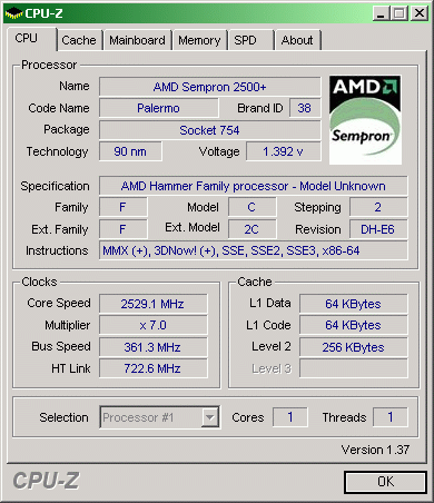 | Процессор (ядро) | AMD Sempron (Palermo) |