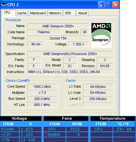 Результат разгона AMD Sempron (Palermo)