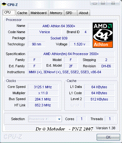 | Процессор (ядро) | AMD Athlon 64 (Venice) |