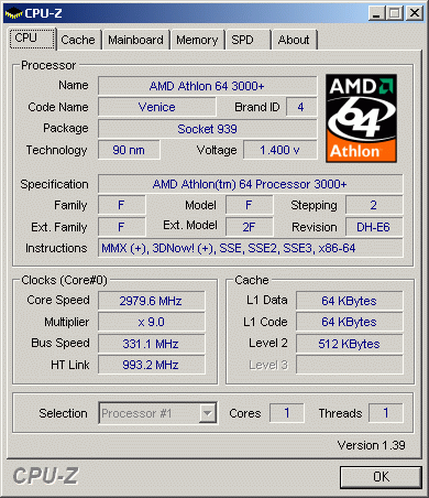 | Процессор (ядро) | AMD Athlon 64 (Venice) |