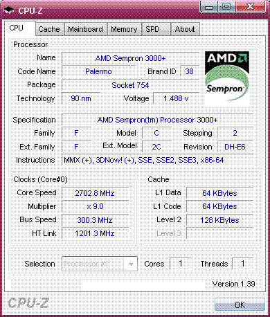 | Процессор (ядро) | AMD Sempron (Palermo) |