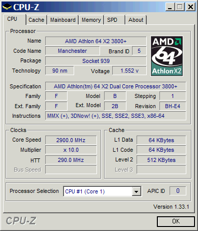 Результат разгона AMD Athlon 64 X2 (Manchester)