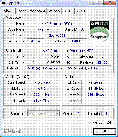 | Процессор (ядро) | AMD Sempron (Palermo) |