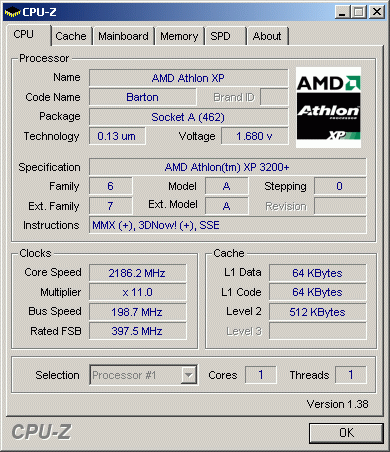 | Процессор (ядро) | AMD Athlon XP (Barton) |