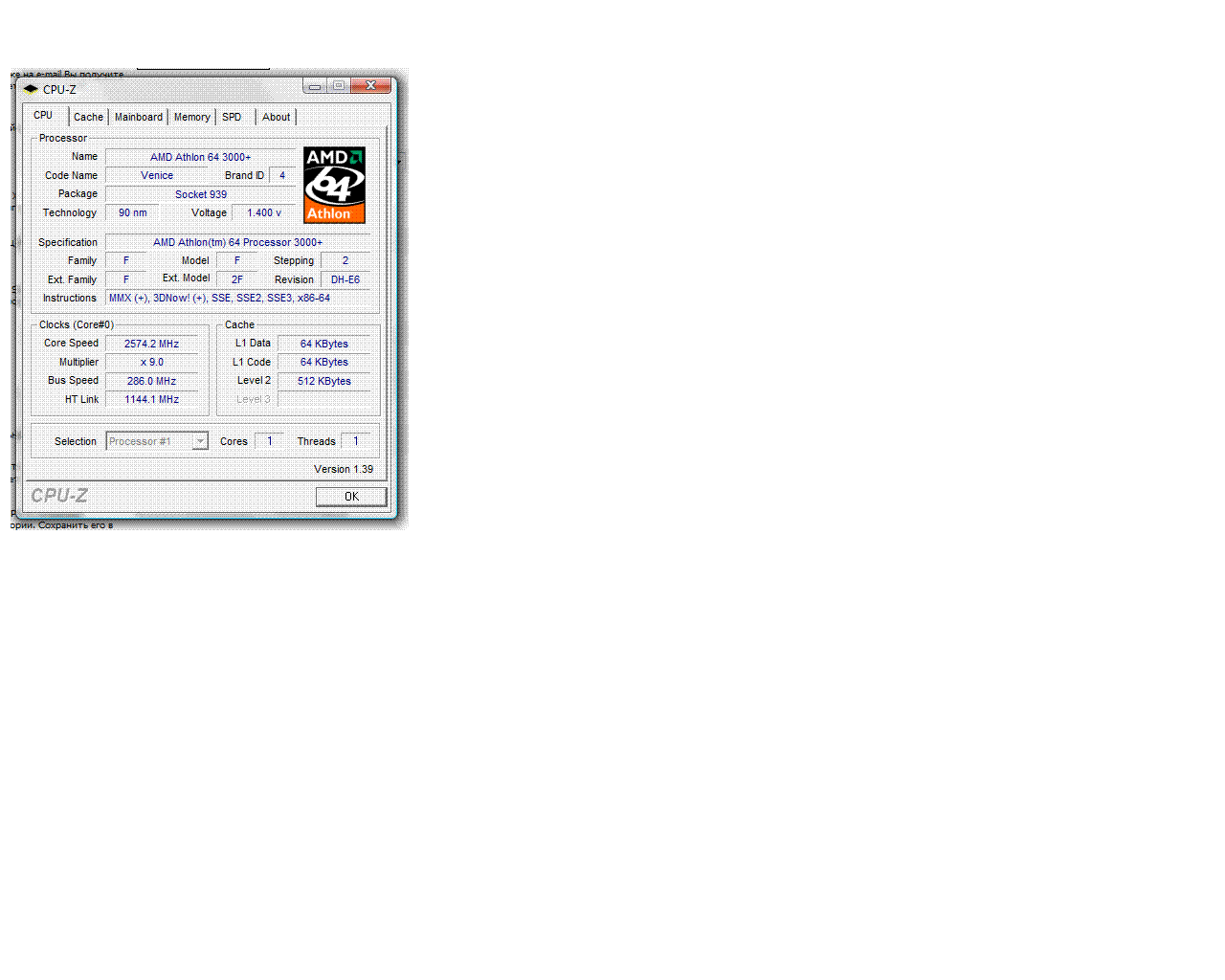 | Процессор (ядро) | AMD Athlon 64 (Venice) |
